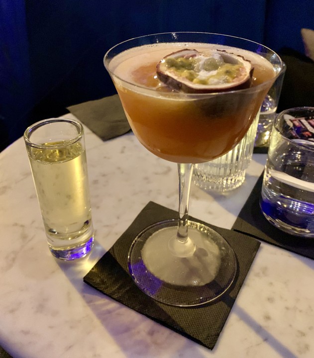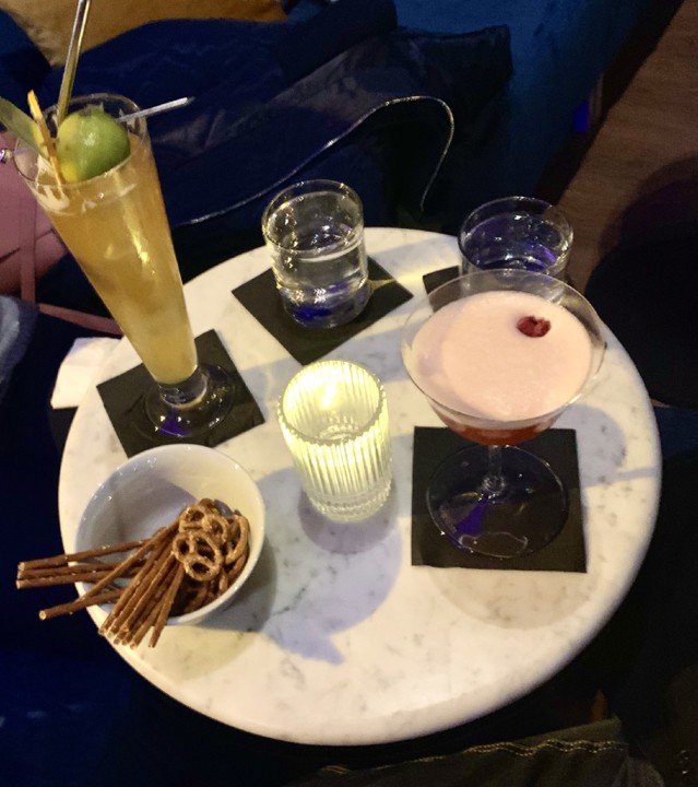 e o Electric Lady, ambos frutados e frescos, o 1.º mais cítrico e quente, com a canela, o 2.º mais doce e ácido com a toranja e a framboesa. O m-R provou o French Affrair (sem gelo e com framboesas) e o PornStar Martini (sem gelo, com maracujá e vinho Prosecco).