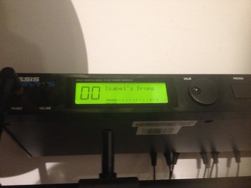 Depois de horas a soldar peças e a acertar ligações e tudo mais (enquanto eu enviava Cvs no PC, mesmo ao lado), o m-R conseguiu pôr a bateria a funcionar melhor do que quando a compramos! E ainda me fez uma surpresa: agora os presets de som têm o meu nome!