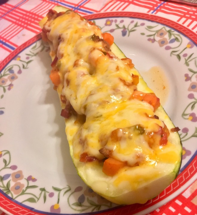 Eu é courgette em tudo: sopa, "esparguete", "batatas fritas", lasanha e "barquinhos", tudo de courgette, para diminuir os hidratos, aumentar a ingestão de vegetais e manter a saciedade.
